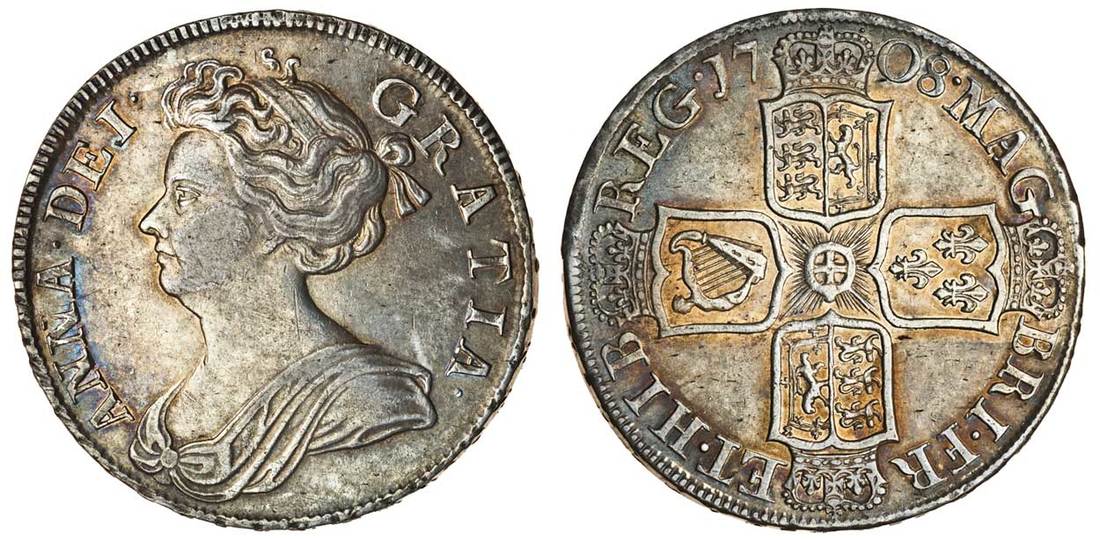 (x) Anne (1702-14), post Union, Halfcrown, 1708, septimo, draped bust left, rev. four crowned shields cruciform (ESC 577; S.3604), golden lustre showing through old tone, good very fine
