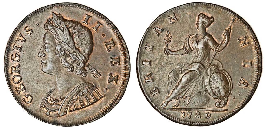 George II (1727-60), Halfpenny, 1729, young laureate and cuirassed bust left, rev. Britannia seated left (Peck 830; S.3717), extremely fine, traces of lustre