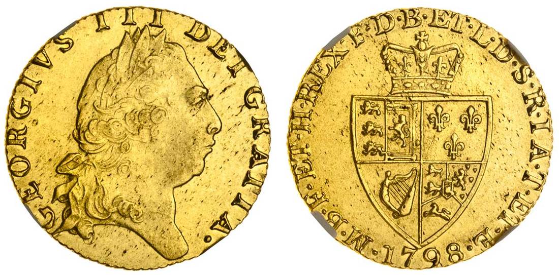 (x) George III (1760-1820), Guinea, 1798, fifth laureate head right, rev. crowned spade shaped shield (S.3729), in NGC holder graded AU58