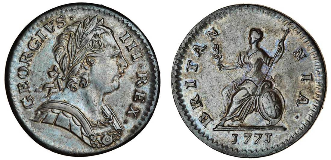 George III (1760-1820), Farthing, 1771, laureate and cuirassed bust right, rev. Britannia seated left, leaf points to centre of N (Peck 909; S.3775), extremely fine