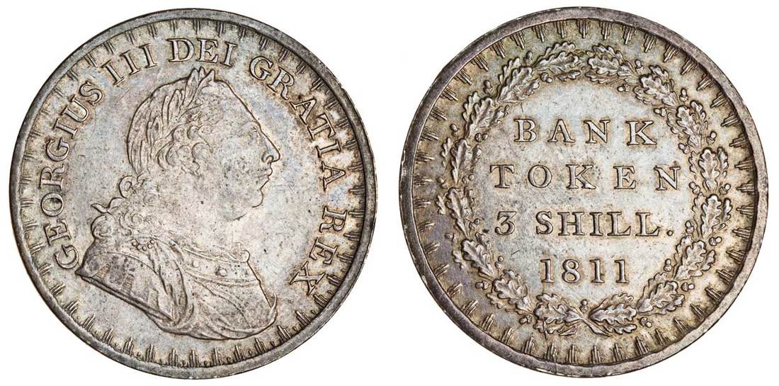 (x) George III (1760-1820), Bank of England Token Three Shillings, 1811, laureate and cuirassed bust right, rev. value (S.3769), old grey tone, good very fine