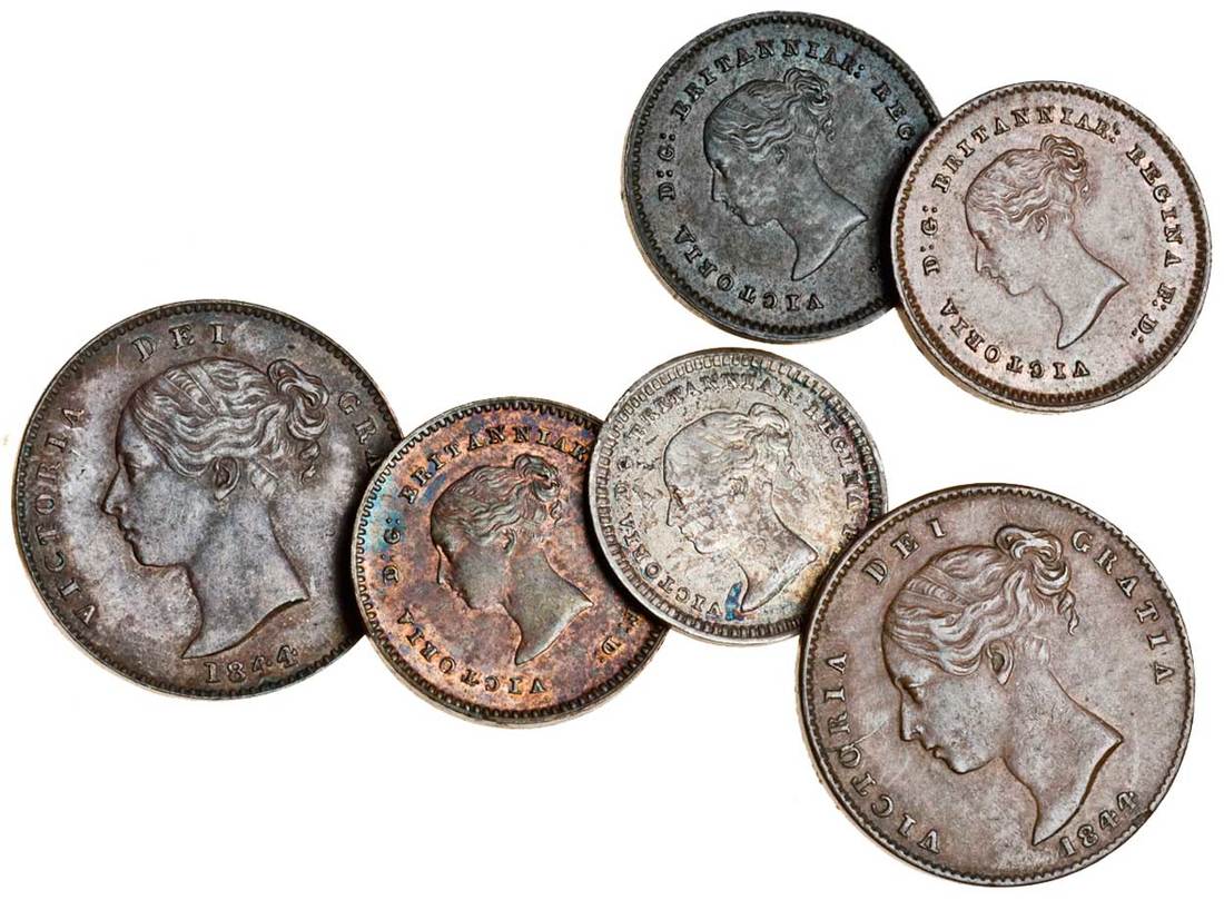 Victoria (1837-1901), Three-Halfpence, 1838, AE Third-Farthing, 1844 (2), Quarter-Farthing, 1839 (2), 1852, young head (S.3915, 3952, 3953), good very fine to good extremely fine (6)