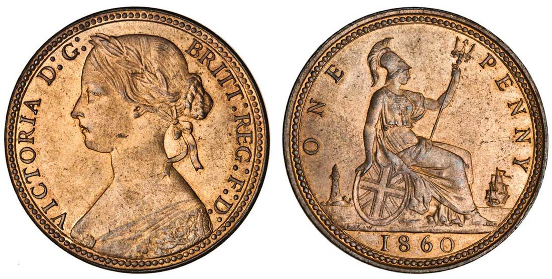 Victoria (1837-1901), Penny, 1860, laureate bust left, rev. Britannia seated left, beaded border both sides, die 1 + C (F.7; P.1623; S.3954), light cabinet friction but uncirculated with some lustre