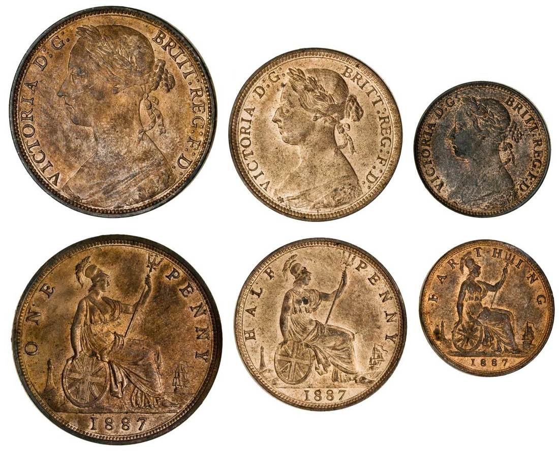Victoria (1837-1901), AE Penny, Halfpenny, Farthing, 1887 (S.3954, 3956, 3958), about uncirculated, all with lustre (3)