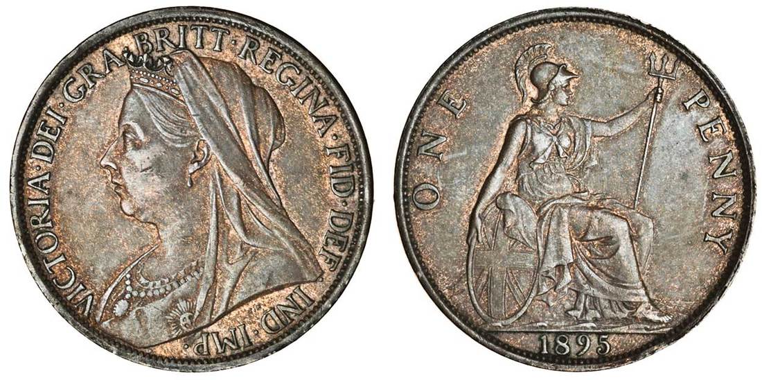 Victoria (1837-1901), Penny, 1895, veiled bust, rev. Britannia seated left, low tide and p is 2mm. from trident (Peck 1939; S.3961A), nearly extremely fine, rare