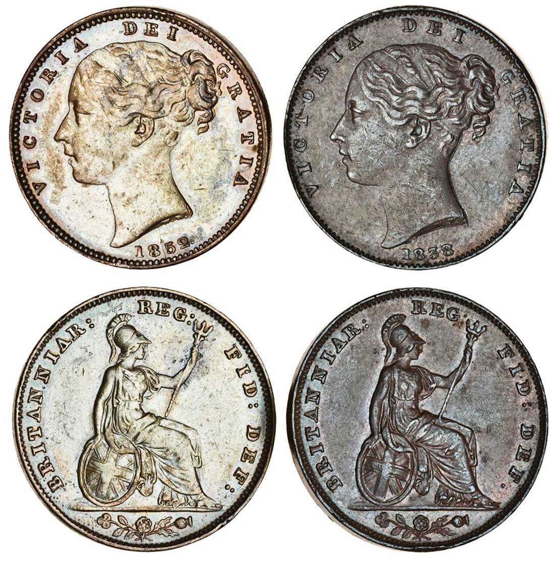Victoria (1837-1901), copper Farthings (2), 1838, 1852 (Peck 1553, 1574; S.3950), about extremely fine (2)