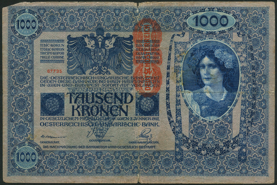 Austro- Hungarian Bank, a group comprising 100 (7) and 1000 (4) kronen, 1919 with red DEUTSHOSTERREICH overprint (7), 1000 and 5000 kronen, 1922,