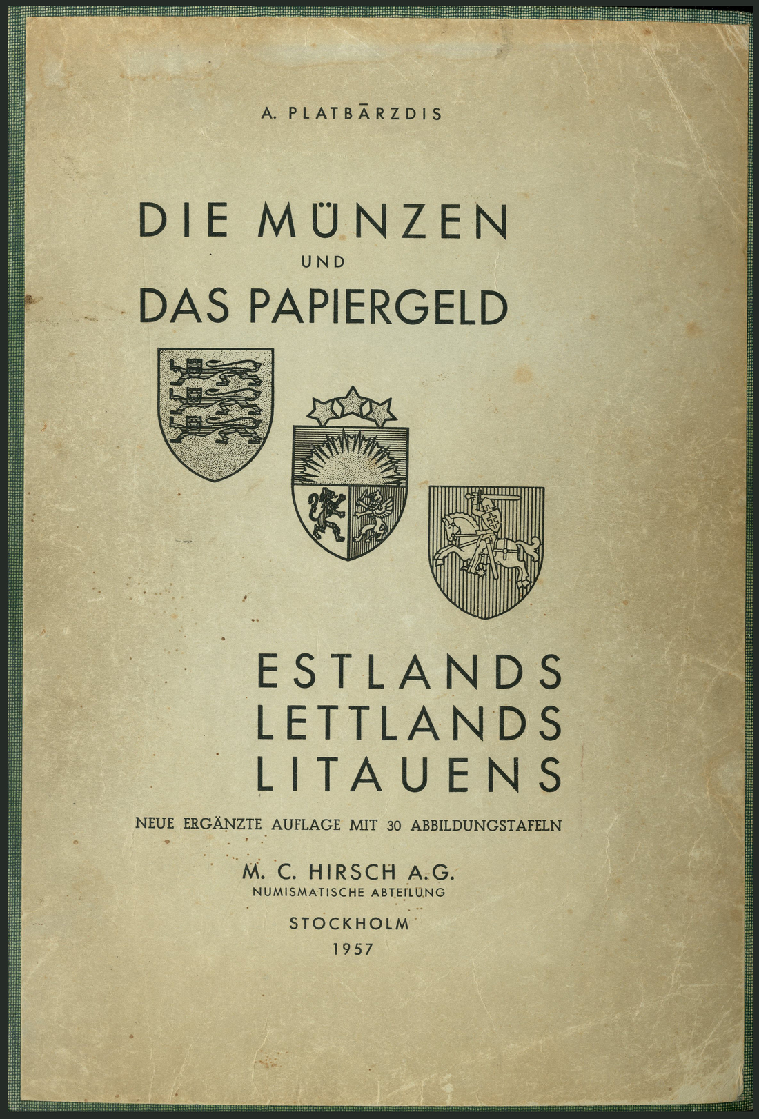 Baltic States, 'Die Munzen und Papergeld', a hardbound volume of the seminal work on the Baltic States, Estonia, Lithuania and Latvia. Text in German in 1952 by M.C.Hirsch in Stockholm. This volume number 52 of a numbered printing.