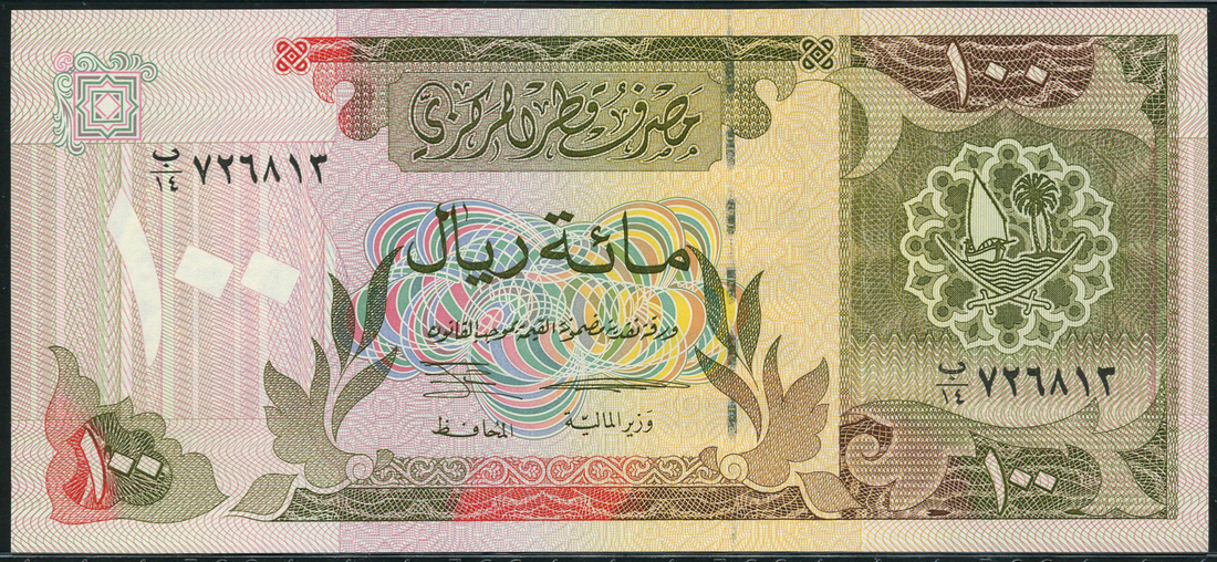 Qatar Monetary Agency/Central Bank, a group of notes comprising 5, 10 and 50 riyals, ND (1981), 1 riyal (2), 1985, 1, 5, 10, 50 and 100 riyals, 1996, and 1 riyal, 2003