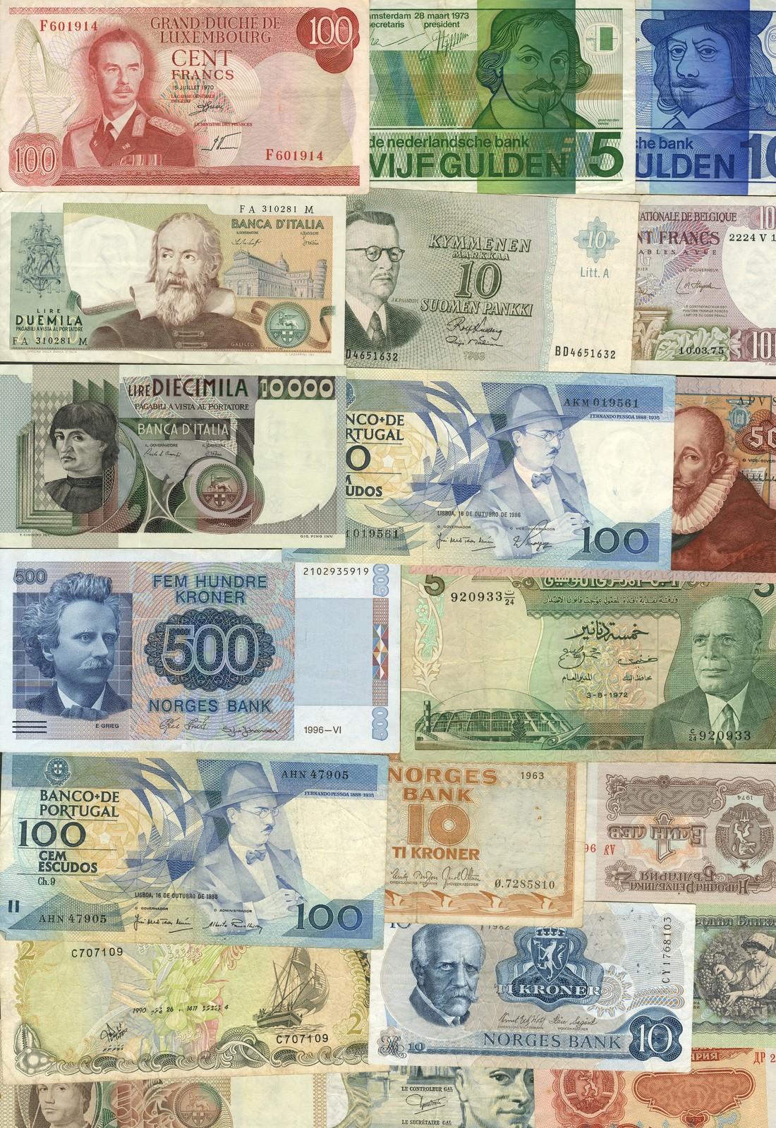 A good sized selection of notes, from countries including, Norway, Portugal, Tunisia, Germany, Italy, Malta, Belgium, Netherlands, Spain, France, Finland, Bulgaria