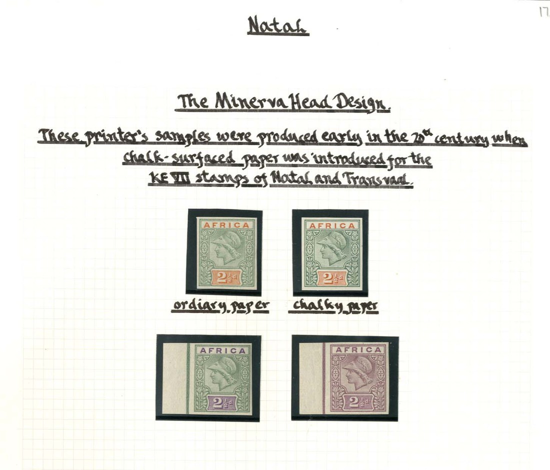 2½d. in orange and green, dull mauve and violet and green and violet, all on unsurfaced paper, and 2½d, in green and orange on surfaced paper, two marginal, fine