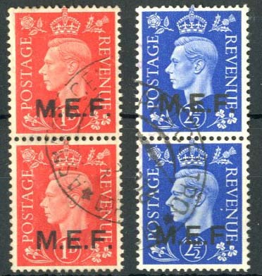 1942 (Mar.) 1d. and 2½d. vertical pairs showing Type 2 and Type 2a. se-tenant pairs, fine used. S.G. M6b, M8b; £230