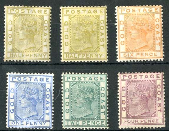 1876-84 CC, perf 14 ½d. (small thin at top), 1d., 2d., 4d. and 6d., and 1883 CA ½d., all unused and regummed or with gum disturbed, though of fine appearance. S.G. 4-9, £830