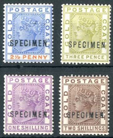 2½d., 3d., 1/- and 2/-, each overprinted "specimen", fine mint. Cat. £180