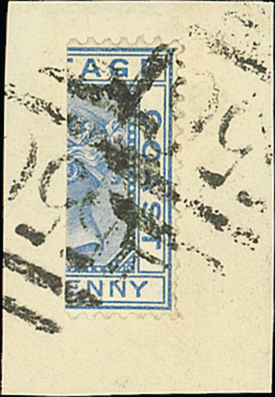 1d. blue bisected vertically and tied by "564" obliterator on small piece, fine. Photo