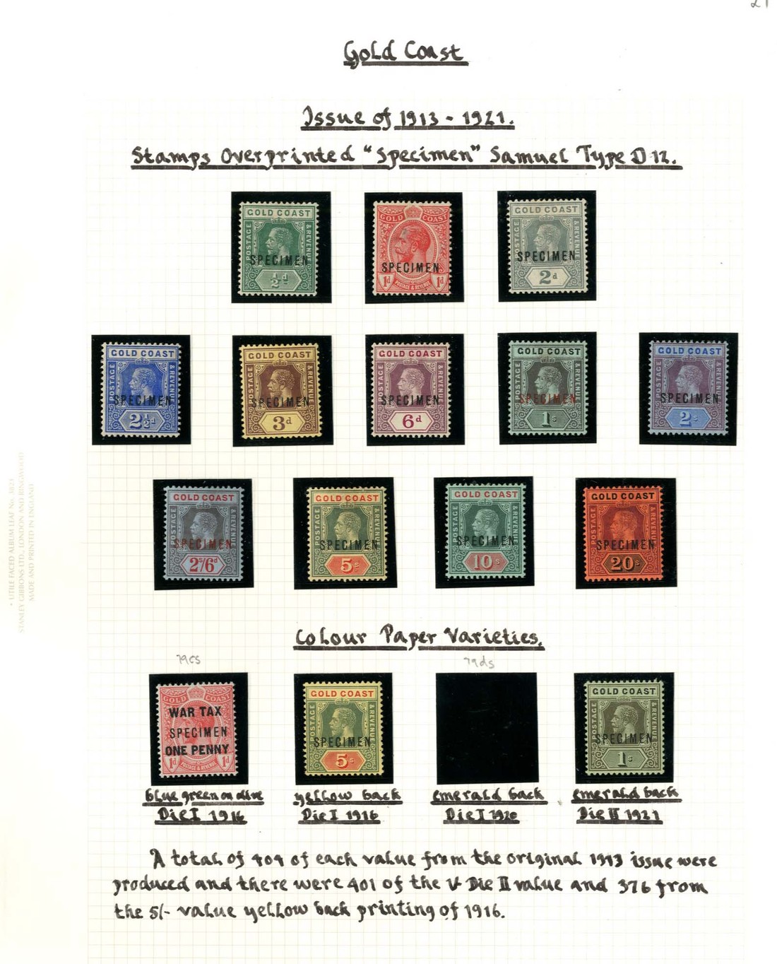1913-21 MCA ½d. to 20/- set of twelve plus 1/- Die II and 5/- with yellow back, and 1919 War Tax 1d. on 1d., each overprinted "specimen", mounted mint. Cat. £510