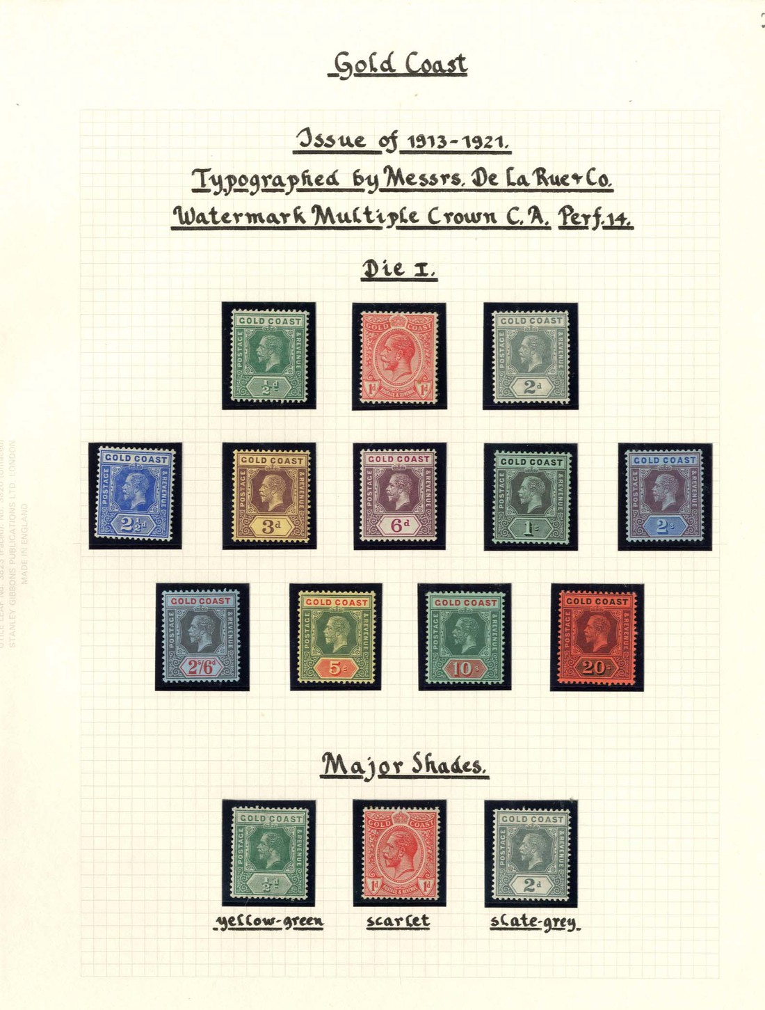 — ½d. to 20/- complete with all listed papers/shades (the 2/- Die II is used) and 1919 War Tax 1d. on 1d. (2); also 20/- (used) showing "kiss" print of the frame. Mostly fine mint. S.G. 71-85, £900