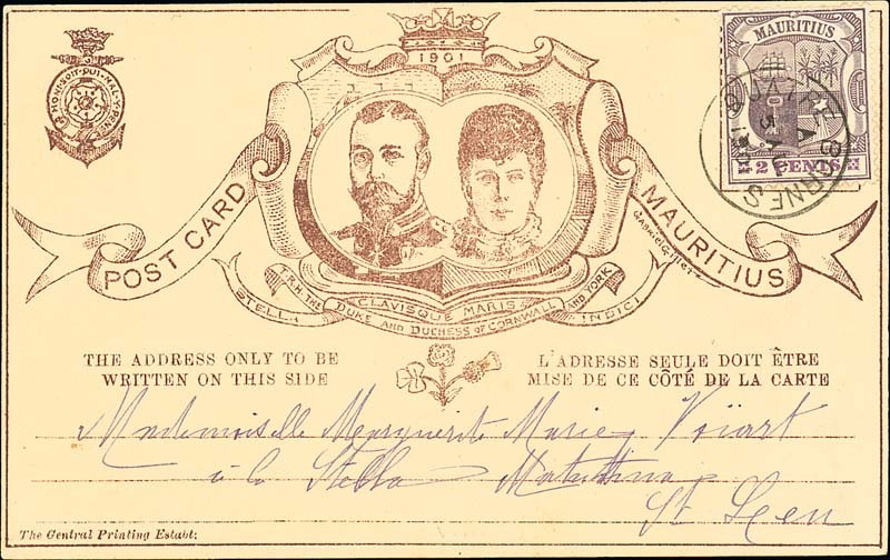 1901 Royal Visit card bearing Arms 2c. tied by "quatre bornes" c.d.s. on day after arrival (5.8), fine. A scarce usage. Photo