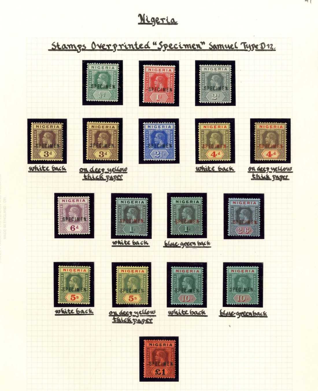 1914-29 MCA ½d. to £1 with all listed papers/shades, each overprinted "specimen", fine mint. S.G. 1s-12s, £589