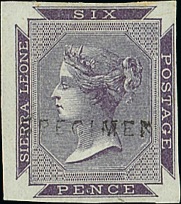 6d. dull purple on bluish paper, imperforate and handstamped "specimen" (Type D5), without gum, fine. Photo