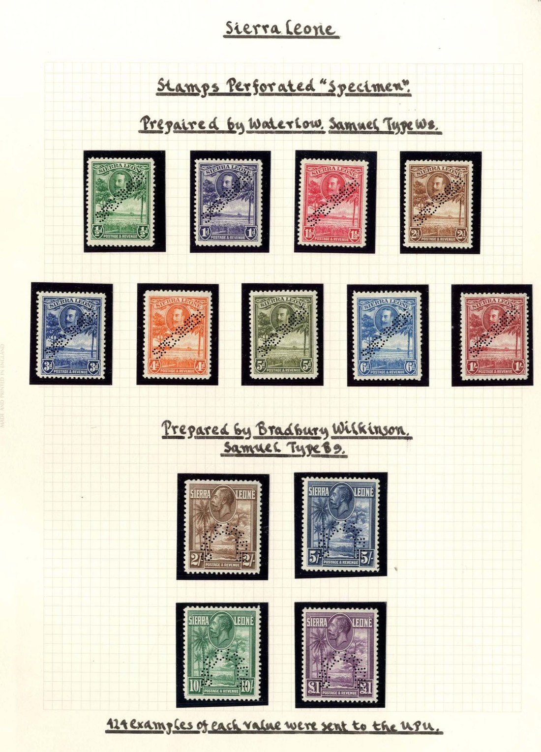 — ½d. to £1 set of thirteen, the 1/- and 2/- with the odd shortish perf , 1935 Jubilee, 1937 Coronation and 1946 Victory sets. each perforated "specimen", fine mint. Cat. £680