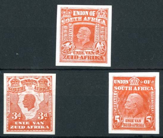 3d., 4d. and 5/- in orange-red on individual pieces of surfaced glazed card
