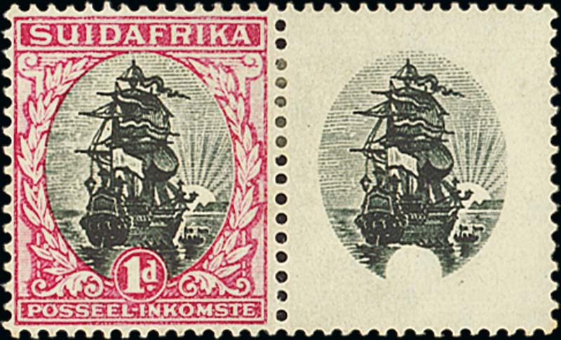 1d. black and carmine Type I horizontal pair, the right-hand stamp variety frame omitted, mint with a central hinge remainder; variety with tiny indentation. S.G. 43b, £600. Photo