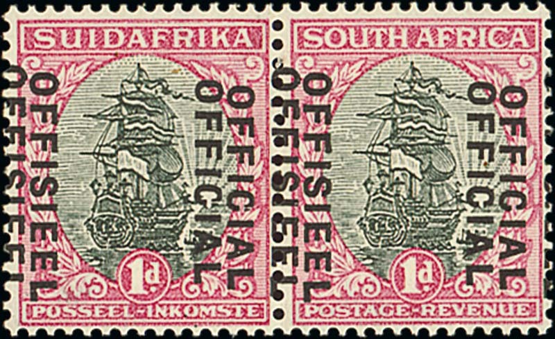 1d. black and carmine Type II horizontal pair, variety overprint double, fine mint. S.G. O13da, £300. Photo