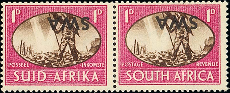 1946 Victory 1d. brown and carmine, variety overprint inverted, fresh unmounted mint; folded between. S.G. 131a, £400. Photo