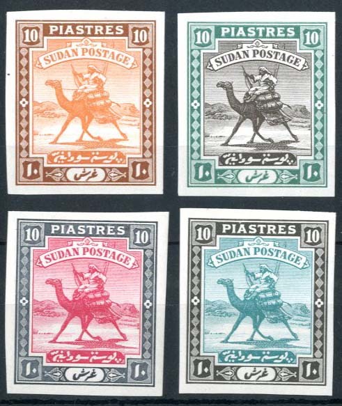 10p. imperforate colour trials (4) on gummed watermarked paper, fine
