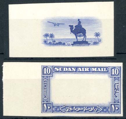 10m. marginal imperforate plate proofs of the frame only and of the vignette, in blue on thin card, fine