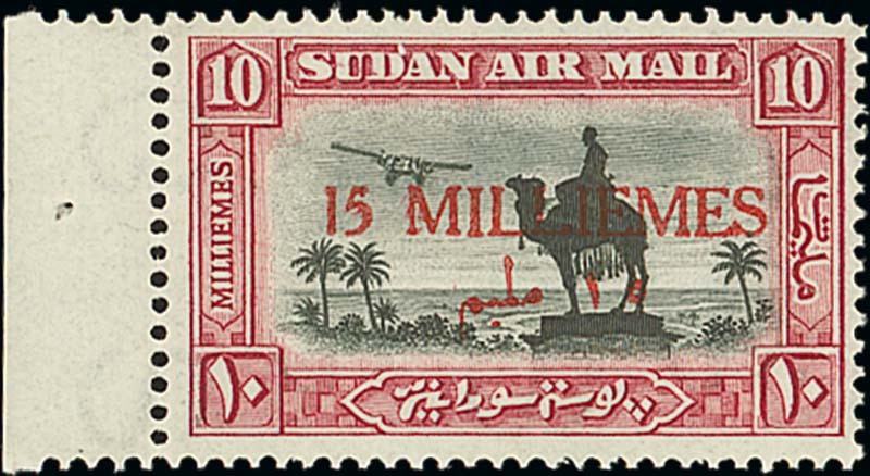 15m. on 10m. black and carmine with trial surcharge in red, margin at left, fine mint. Hass Certificate (2006). Cat. £350. Photo