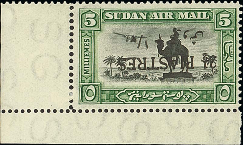 2½p. on 5m. black and green, a lower left corner example showing variety surcharge inverted, fine mint. S.G. 70c, £1000. Photo