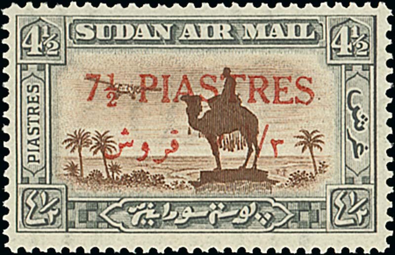 7½p. on 4½p. red-brown and green showing trial surcharge in red [39] with Arabic character "3" for "2", fine mint. Hass Certificate (2006). Cat. £350. Photo