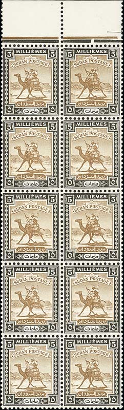 1948 5m. olive-brown and black, a marginal block of ten (2x5) showing variety watermark inverted, fine unmounted mint. S.G. 100w, £750