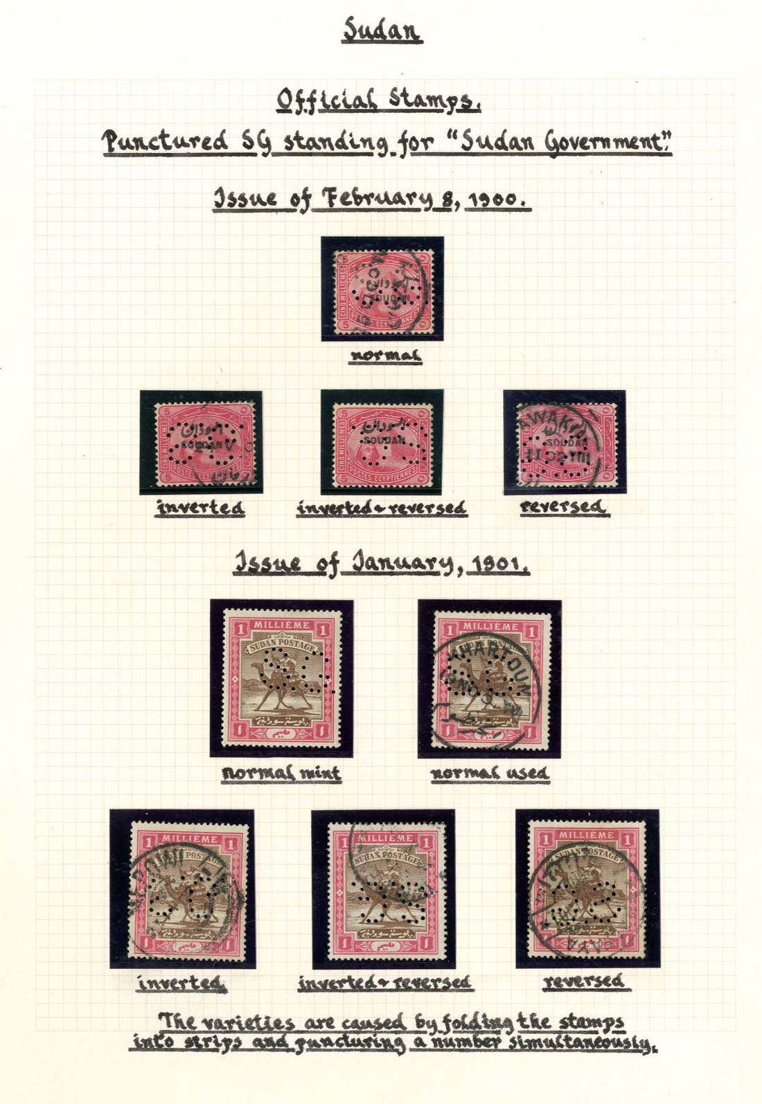 — 5m. (4), one with punctures inverted, one inverted and reversed (mint) and one reversed, and 1901 (Jan.) 1m. (5) including one with punctures inverted, one inverted and reversed and one reversed, fine used283+. S.G. O1-O2, £283+