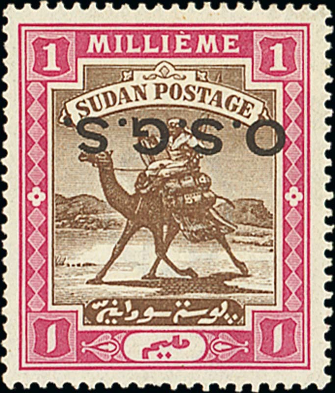 — 1m. brown and pink showing variety overprint inverted with round stops, fine mint. B.P.A. Certificate (1989). S.G. O3e, £900. Photo
