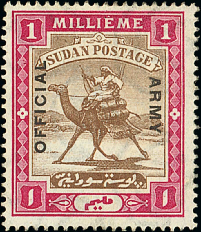 1905 (Jan.) wmk. Star and Crescent, "army" reading down, 1m. brown and carmine with small type, fine unused without gum. B.P.A. Certificate (1992). S.G. A3b, £1300. Photo