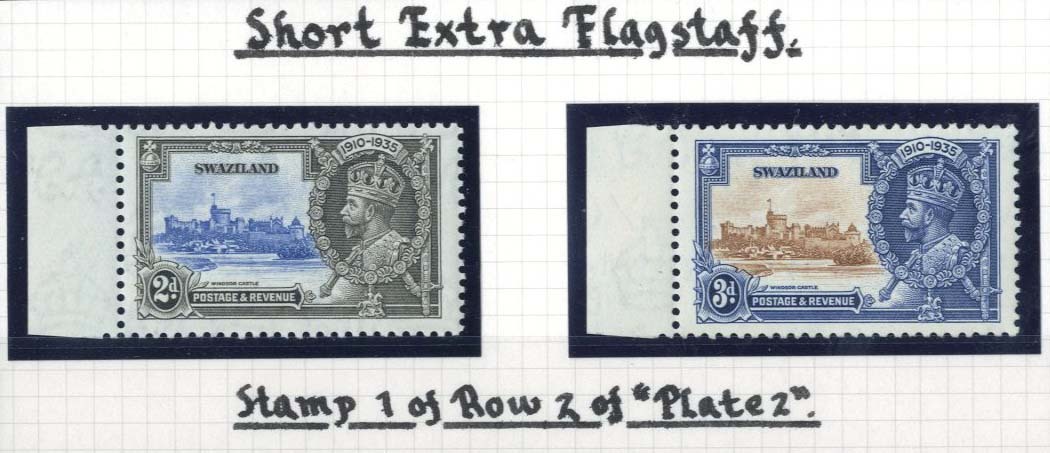 2d. and 3d. marginal examples, both short extra flagstaff, fine mint. S.G. 22b, 23b, £270