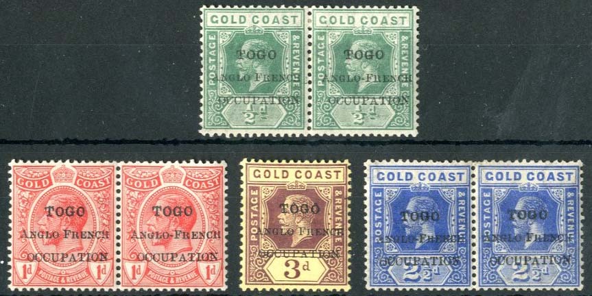½d., 1d. and 2½d. pairs and 3d. with yellow back single, each showing variety no hyphen after "anglo", fine mint. Cat. £231