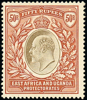 1907 50r. grey and red-brown, large part original gum, light horizontal gum bend, otherwise fresh and fine. S.G. 33, £2,500. Photo