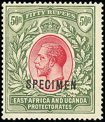 1921-22 50r. carmine and green overprinted "specimen", fine mint. S.G. 75s, £475. Photo