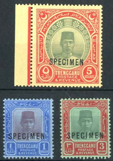 1921-41 MCA $1 to $3 (margin at left) set of three, each overprinted "specimen", fresh and fine mint. S.G. 23s-25s, £200