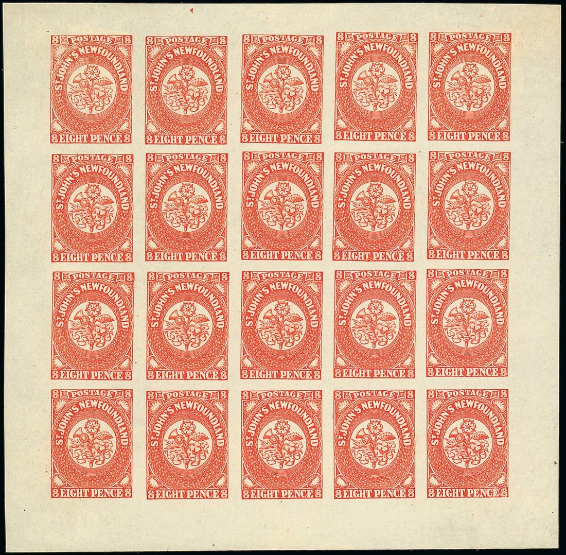 8d. scarlet-vermilion complete pane of twenty, large part original gum, fresh and fine. A splendid multiple. S.G. 8, £7,500. Photo
