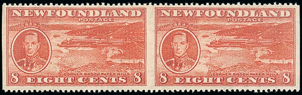 1937 Coronation 8c. scarlet horizontal pair, variety imperforate between, fresh and fine mint. S.G. 260b, £1,200. Photo