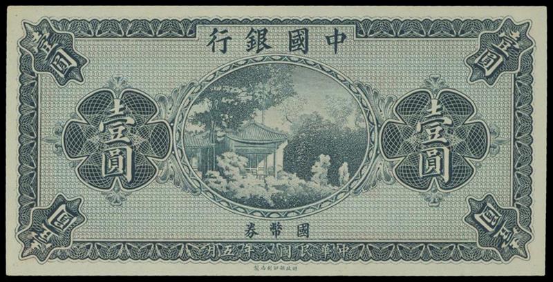 Bank of China, 1yuan, unissued remainder, 1919, black, pavilion at centre, reverse red on pale blue, English text,