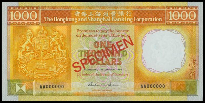 The HongKong and Shanghai Banking Corporation, complete group of specimens all dated 1985, $10, $20, $50, $100, $500 and $1000, (Pick 191s, 192, 193s, 194s, 195s and 196s), PMG 65EQP to 67EPQ, a superb high grade set