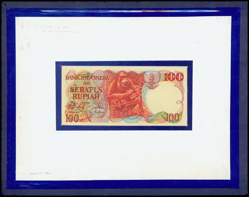 Bank Indonesia, 100 Rupiah, 1981, 1993, an obverse and reverse composite essay on cards binded in booklet form, red and multicolour, reverse red and multicolour,