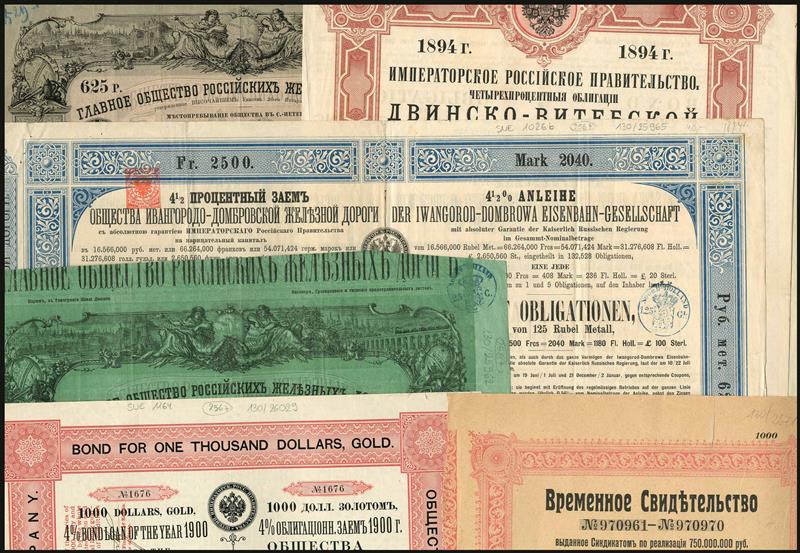 Wladikawkas Railway Company, 4% Loan, 1900, bond for $1000 gold, no.1676, no coupons, together with a large collection/accumulation of Russian railway bonds including Railway Ministry, 4½% Loan, 1917, 1000 roubles, some duplication, mixed condition but some are very fine and a useful starter collection. (176)