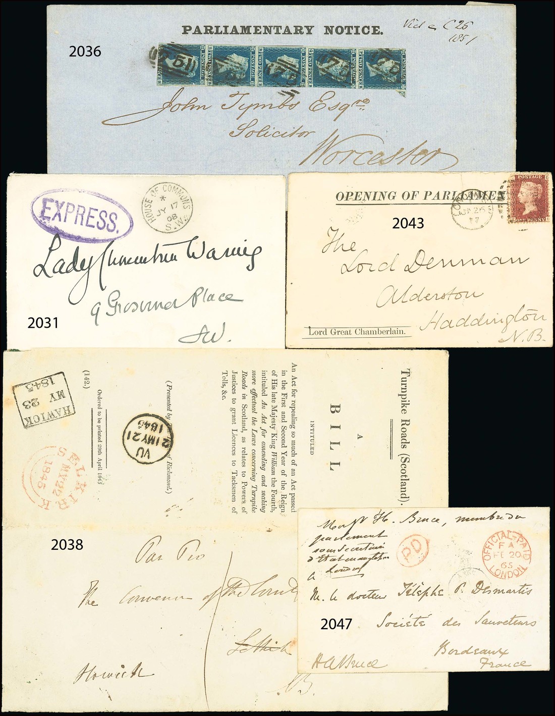 1845 (21 May) a printed Bill of the Turnpike Roads (Scotland) marked "Par Pro" and sent to Selkirk, rated "1"; readdressed to Hawick (with no extra charge), the reverse bears London despatch, Selkirk c.d.s. in red and boxed Hawick in black. Photo